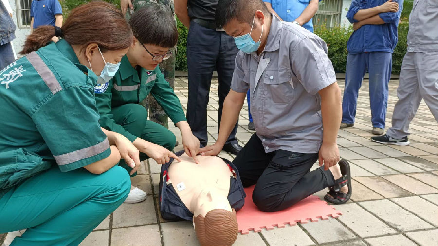 義診現(xiàn)場(chǎng),專家們仔細(xì)聆聽職工對(duì)癥狀的陳述,認(rèn)真分析病情,為現(xiàn)場(chǎng)200余名職工提供切實(shí)可行的診療建議;醫(yī)護(hù)人員為職工測(cè)量血壓、血糖,并組織開展心肺復(fù)蘇實(shí)操演練。