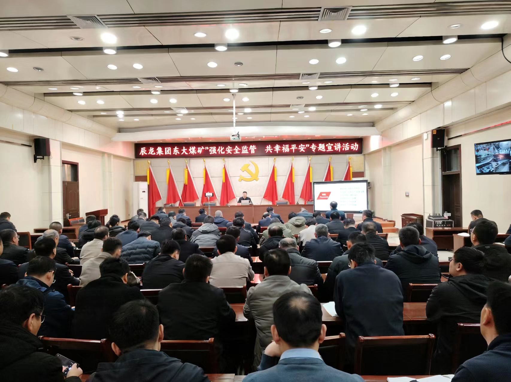 2月21日,東大煤礦開(kāi)展 “強(qiáng)化安全管理 共享幸福平安”專題宣講活動(dòng)。礦井黨政班子成員,副總工程師,一二線區(qū)隊(duì)、生產(chǎn)管理職能科室管理干部及后勤經(jīng)營(yíng)部室負(fù)責(zé)人90余人參加。