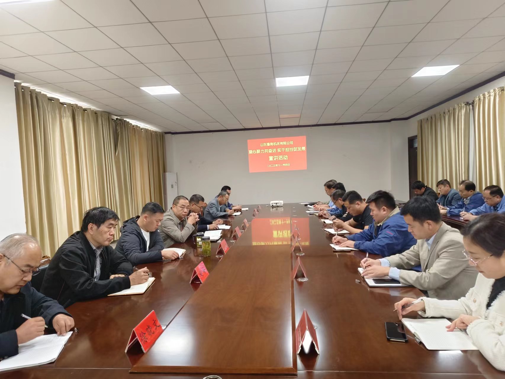 11月14日,辰龍集團(tuán)山東魯南機(jī)床有限公司黨委開展“凝心聚力共奮進(jìn),實(shí)干擔(dān)當(dāng)促發(fā)展”主題宣講活動,公司領(lǐng)導(dǎo)班子、各部門負(fù)責(zé)人和全體在家銷售人員36人參加了宣講活動。