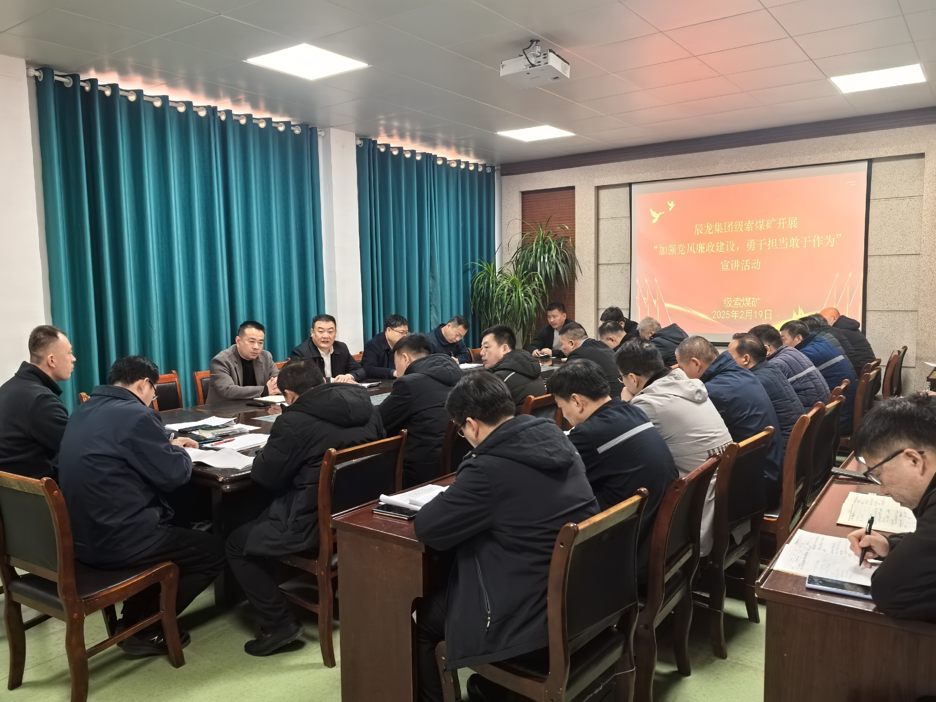 為深入推進黨風廉政建設,增強干部職工廉潔自律意識,2月19日,辰龍集團級索煤礦開展“加強黨風廉政建設,勇于擔當敢于作為”宣講活動。班子成員、副總工、黨支部書記、各單位負責人30余人參加。